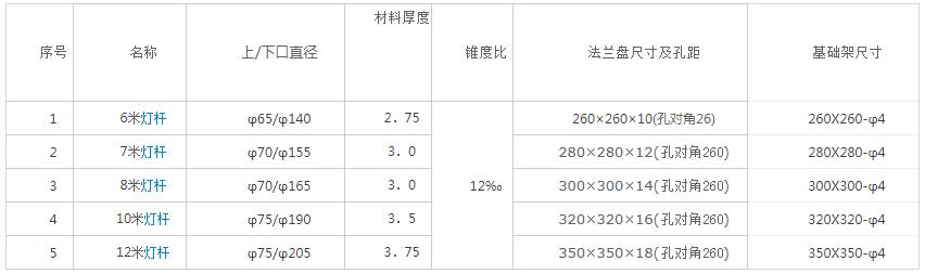 一、標準燈桿尺寸參數(shù)表